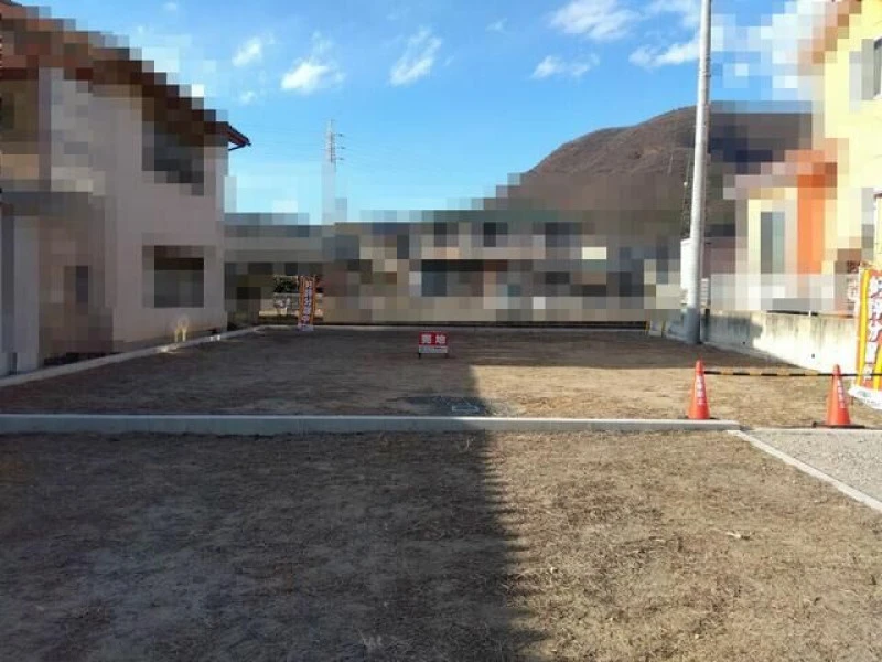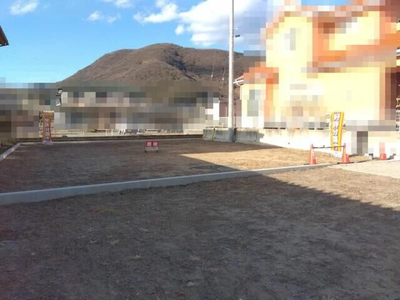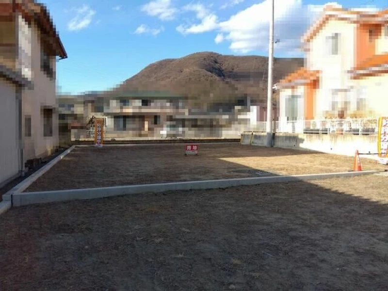 ○石和温泉駅徒歩12分、約214㎡のゆとり。更地渡しで建築プランも立てやすく、上下水道完備。