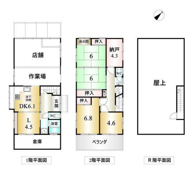 | 設備 | 上水道、下水道、トイレ2箇所、床下収納 | ||