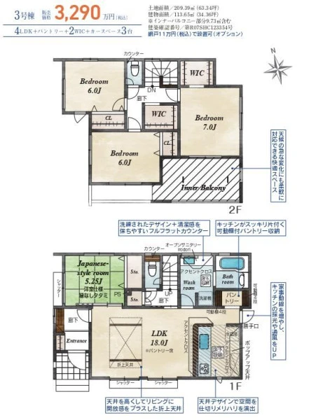 〇地震に強い制震住宅。18帖超の広々LDKと充実収納、駐車場3台完備の4LDK。