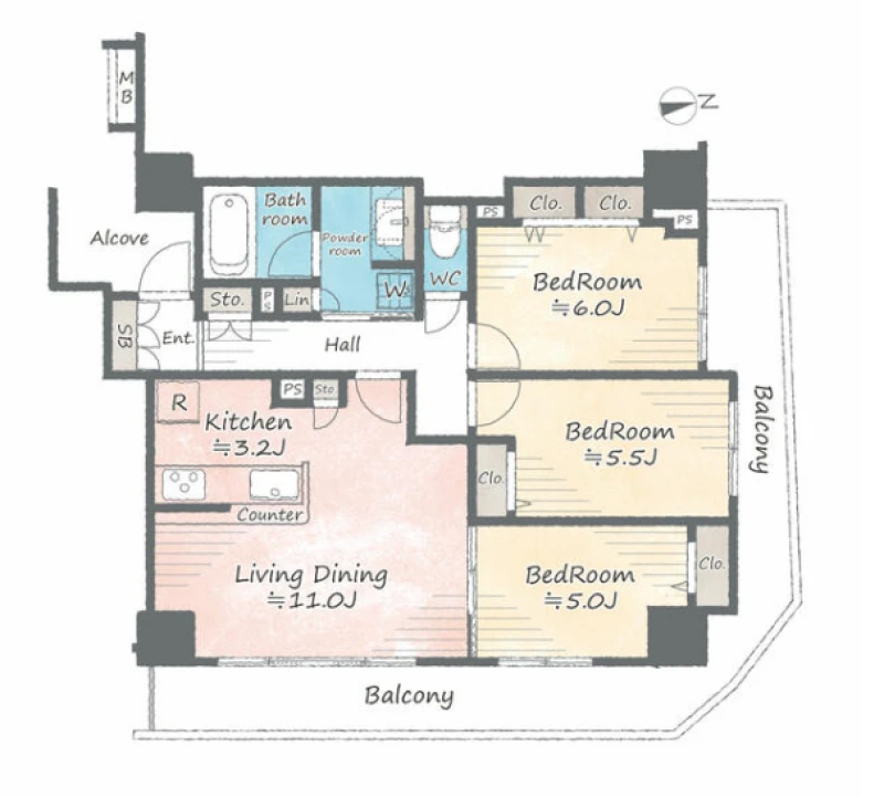 | 間取り | 3LDK | 間取り向き | (角部屋) |
